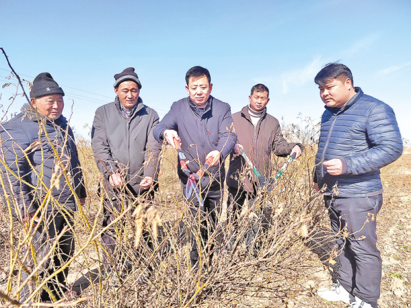1月28日,正阳县清源街道农业技术员向群众讲解玫瑰管理技术。