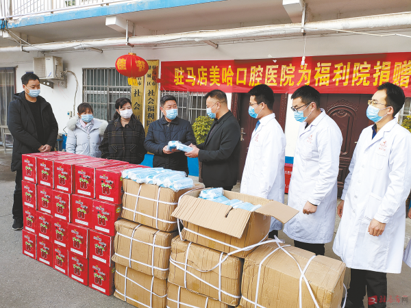 2月1日上午,驻马店美哈口腔医院董事长吴建成一行,带着全院医护人员的深情厚谊,先后到驿城区福利院和驻马店市颐康养老中心,为老人们送去2万只口罩和20箱苹果,祝愿老人们新年健康快乐。