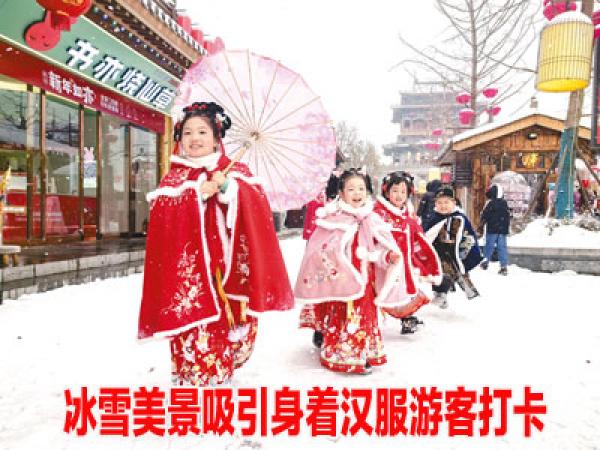飞雪带春风,驿站诗意浓。着汉服、逛驿站、看雪景、打雪仗……4日,皇家驿站银装素裹,多了一份典雅、多了一份韵味,美得犹如一幅水墨画。景区随处可见身穿古韵汉服的俊男靓女徜徉在雪景之中。虽然寒风凛冽,但爱拍照的小姐姐们全然不在乎。“今天拍得很尽兴,穿汉服、赏雪景,别有一番风味。”游客苗女士说。(记者 王晓晶)