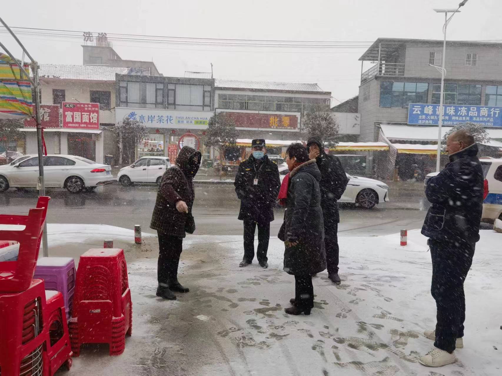 加强巡查,做好应对防范工作。镇应急办、执法大队、派出所等工作人员,开展日常巡查工作,对易凝冻、易结冰路段及时悬挂警示牌,在镇辖区内主要交通路段设置24小时值班值勤点位,提醒过往群众、车辆谨慎通行,确保交通保畅,切实把各项防范应对措施做实、做细、做到位。