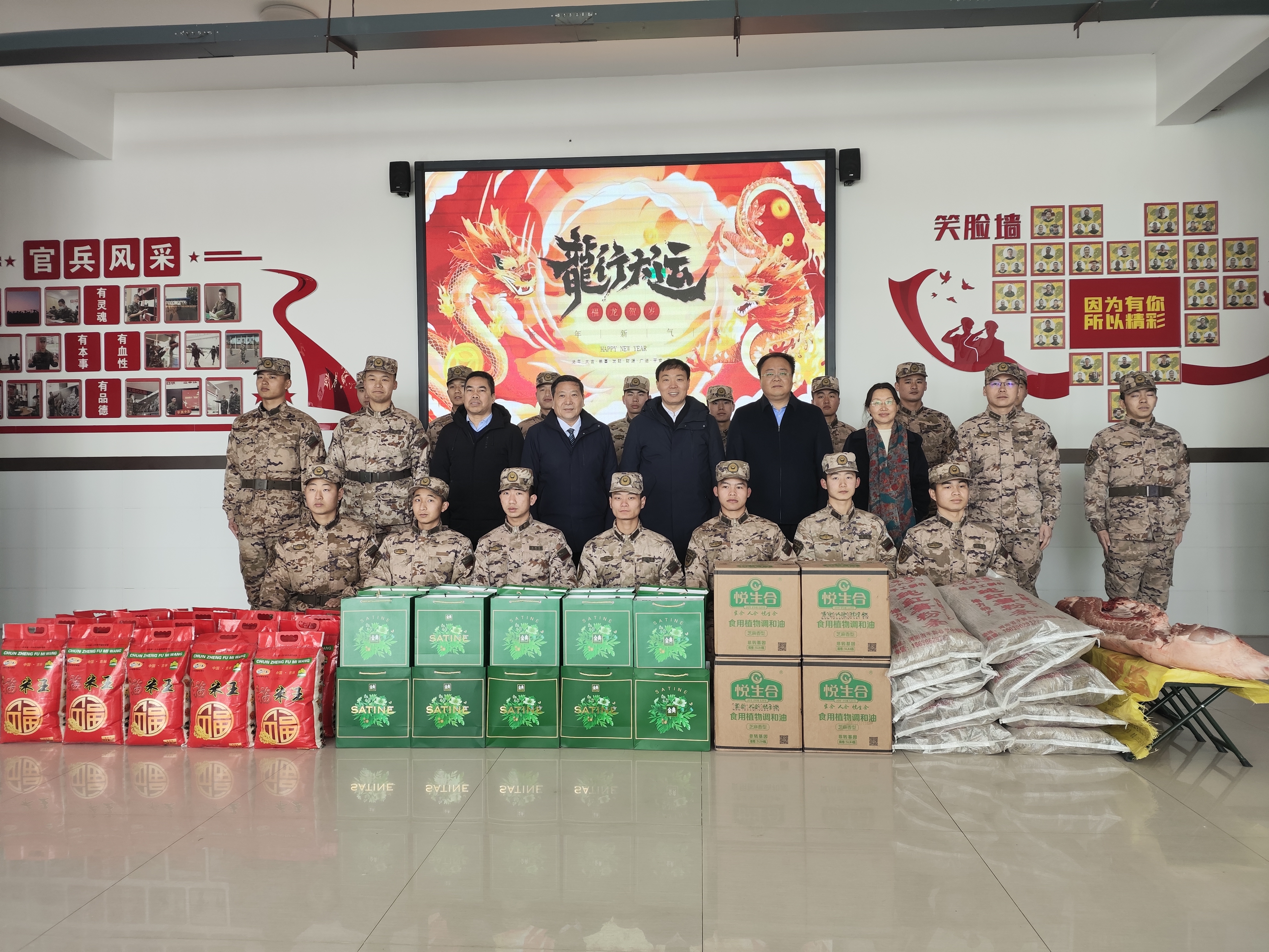 驻马店网讯(记者 徐佳瑞 通讯员 王家平)2月5日上午,在新春佳节即将来临之际,平舆县委书记刘飞,县委副书记、县长李磊,县人大常委会主任石玉兴,县政协主席李志娴,县委常委、县委办公室主任郭东泉一行走访慰问驻平舆部队官兵,为他们送去慰问品,并代表县委、县政府及全县人民向他们致以节日的问候和新春的祝福。