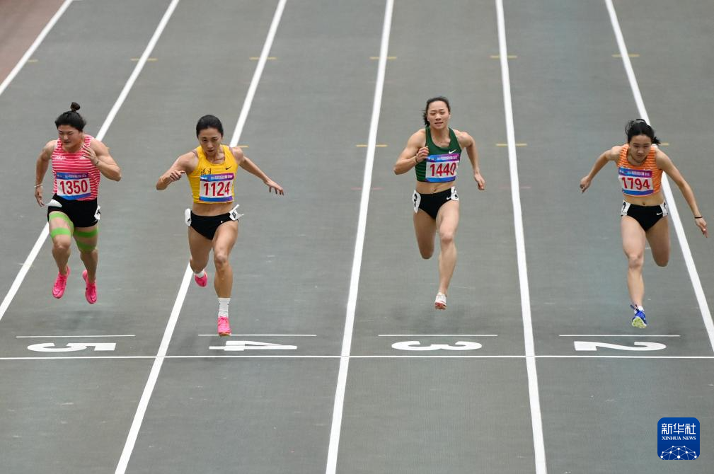 3月3日,陈妤颉(右二)、葛曼棋(左一)在女子60米决赛中。