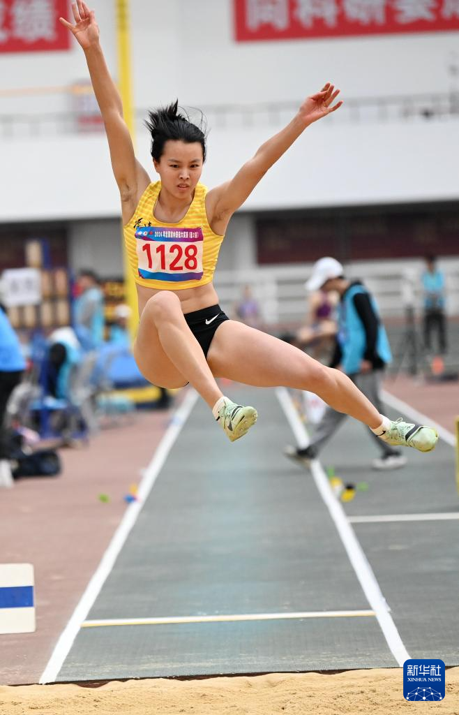 当日,在陕西省西安市举行的2024年全国室内田径大奖赛第2站女子跳远决赛中,江西队选手钟嘉未以6米38的成绩获得季军。