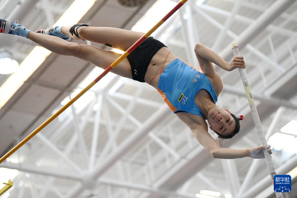 当日,在陕西省西安市举行的2024年全国室内田径大奖赛第2站女子撑杆跳高决赛中,浙江队选手陈巧玲以4米40的成绩获得冠军。