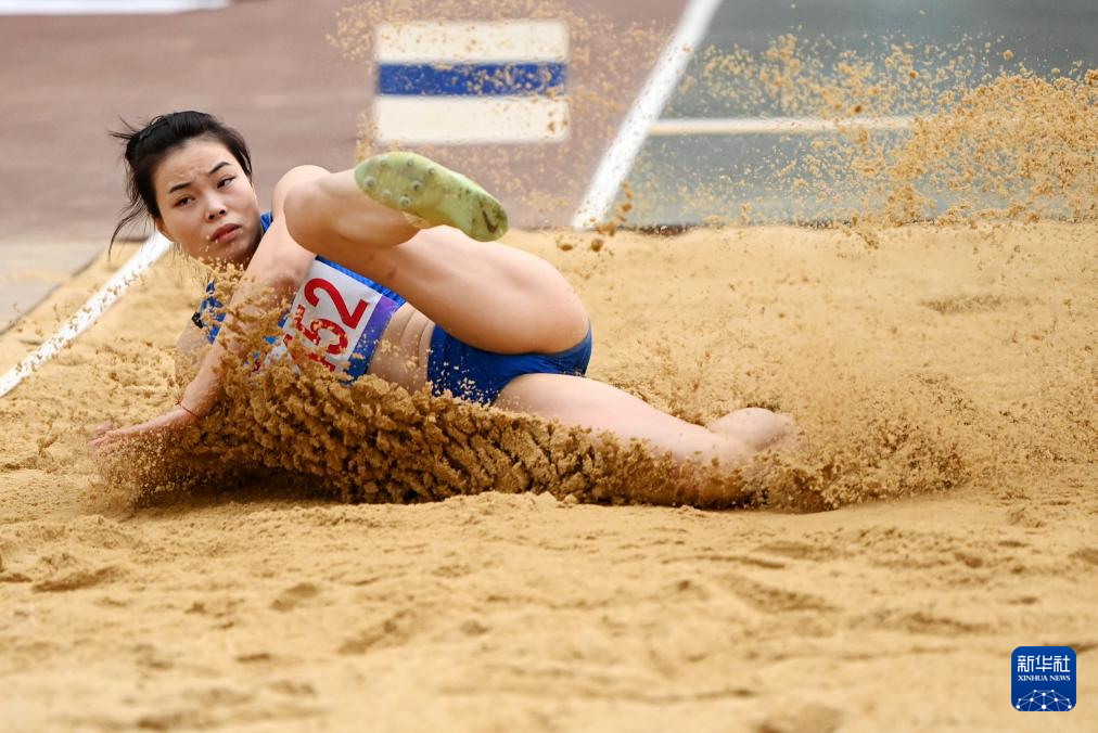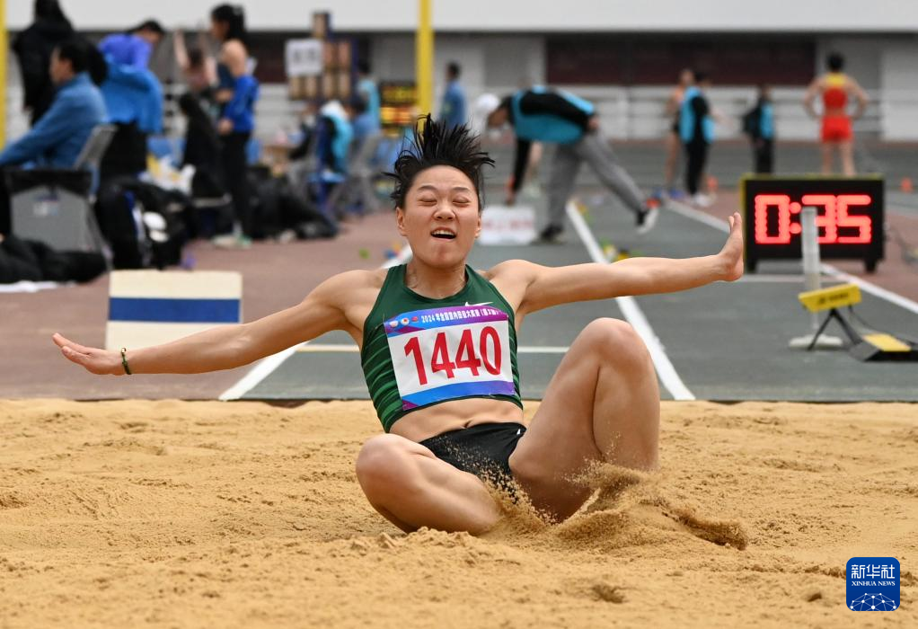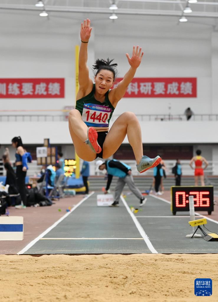 当日,在陕西省西安市举行的2024年全国室内田径大奖赛第2站女子跳远决赛中,江苏队选手谈梦怡以6米55的成绩获得冠军。