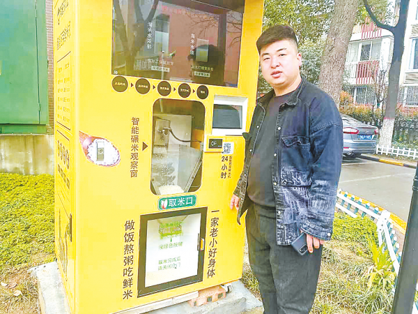 近日,郑州索普锐优先实业有限公司驻马店地区负责人刘鸣在社区演示碾米机使用方法(如图),目前该设备已在市区建业森林半岛、通达小区投放。