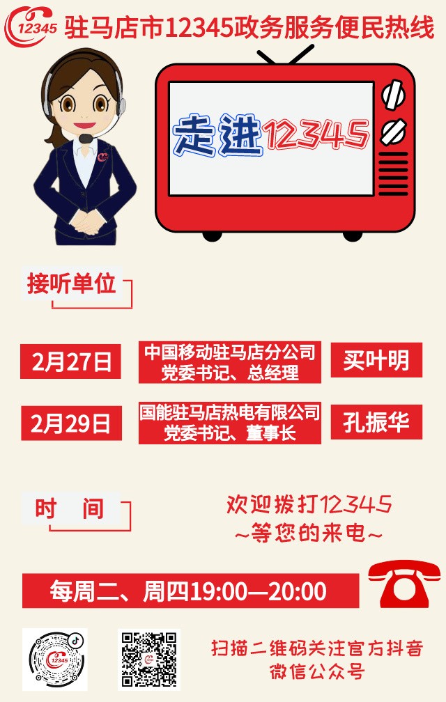 据悉,按照《驻马店市人民政府办公室关于建立市直单位现场接听12345热线电话制度的通知》《驻马店市12345政务服务便民热线中心关于2024年3月份市直单位、中心城区区直单位及乡镇(街道)现场接听12345热线电话的通知》相关要求,3月19日晚上,驿城区古城街道办事处党工委书记李俊领;3月21日晚上,开发区金河办事处党工委书记顿建华现场接听12345热线电话,欢迎广大市民就相关问题进行来电。
