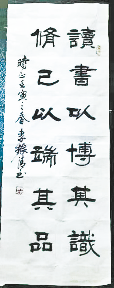遂平县退休教师李振清,数十年对古今名碑、名帖临池不辍,注重传统,博采众长,汉隶、行草自成一体,其书法作品深受当代书法名家的赞赏和收藏家的青睐。