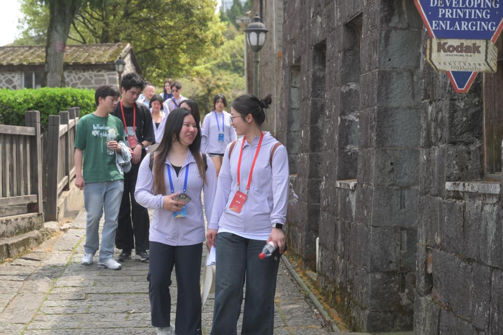 3月25日,福州大学外国语学院学生(前右)与美国太平洋大学学生(前左)在福州鼓岭老街漫步交流。当日,来自美国俄勒冈大学、布朗大学、奥斯威格高级中学等校的美国学生与福州大学学生齐聚福州鼓岭,参加“读懂中国 相约福建”友好交流活动。两国青少年走访鼓岭老街、万国公益社、柳杉王公园等,感受鼓岭百年中外交融历史风貌,了解中美交往往事,畅谈期待与希望,再续中美民间友好交往的“鼓岭故事”。 新华社记者林善传摄