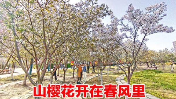 近日,记者在驻马店市区开源公园看到,盛开的山樱树树树相拥,枝枝相争,花花相映。游客徜徉在花海中,纵情享受大自然赐予的美丽景致。(记者 王永良)