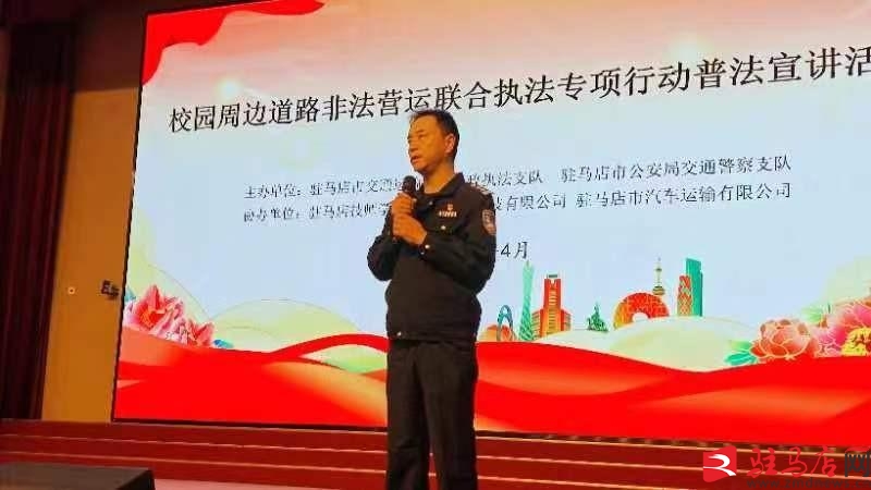 驻马店网讯(记者 高琳琳)为增强广大师生法律意识、法治意识及自我保护意识,引导学生自觉乘坐合法营运车辆出行,自觉抵制乘坐“黑车”,保障自身合法权益和生命财产安全不受侵害,2024年4月23日下午,驻马店市公安局交通警察支队开发区大队联合驻马店市交通运输综合行政执法支队走进驻马店技师学院,共同开展校园周边道路非法营运联合执法专项行动普法宣讲活动。