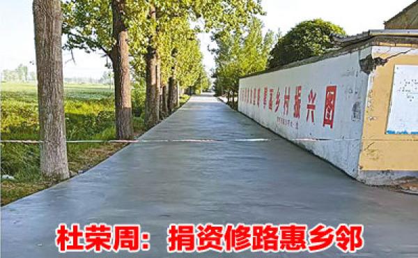 “原来这条路坑洼不平,雨天行走困难,给村民的生活带来了很多不便,但由于缺少资金,一直没有修。现在好了,杜荣周捐资修路,解决了村民出行难题。”近日,驿城区古城街道马元社区党支部书记任志强指着万庄村刚修好的水泥路高兴地说。今年43岁的杜荣周,初中毕业后外出打工,经过20多年的打拼,事业有成的他热心参与家乡公益事业。今年4月,杜荣周在了解到家乡群众因万庄村道路过窄出行不便后,便决定捐资20多万元,为万庄村修好这条路。(记者 高琳琳 通讯员 张丽娟)