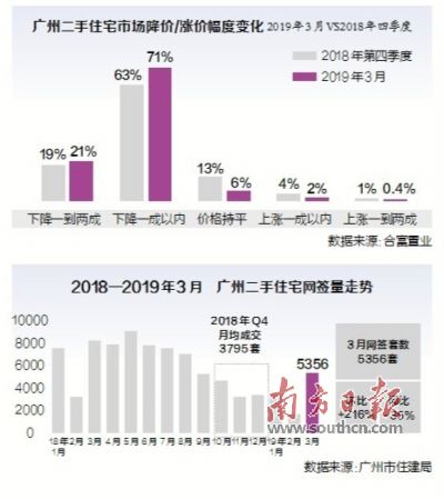 合富研究院高级分析师梁燕明表示,广州二手楼市交投在2019年3月以来确实有所升温,市场交投活跃度优于2018年四季度。不过,放售二手房的普通业主对市场变化的敏感度远低于开发商,因此,广州二手房市场仍存在一定让价空间,卖房意愿强的业主仍能够接受一定幅度的“倾价”。