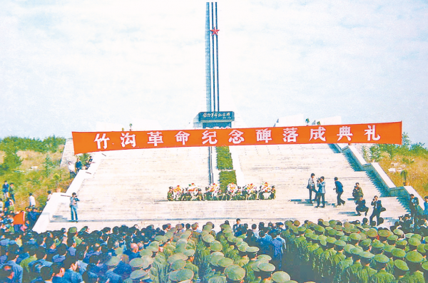 1988年10月,中共河南省委、河南省人民政府在竹沟举行竹沟革命纪念碑落成典礼。 (资料图片)