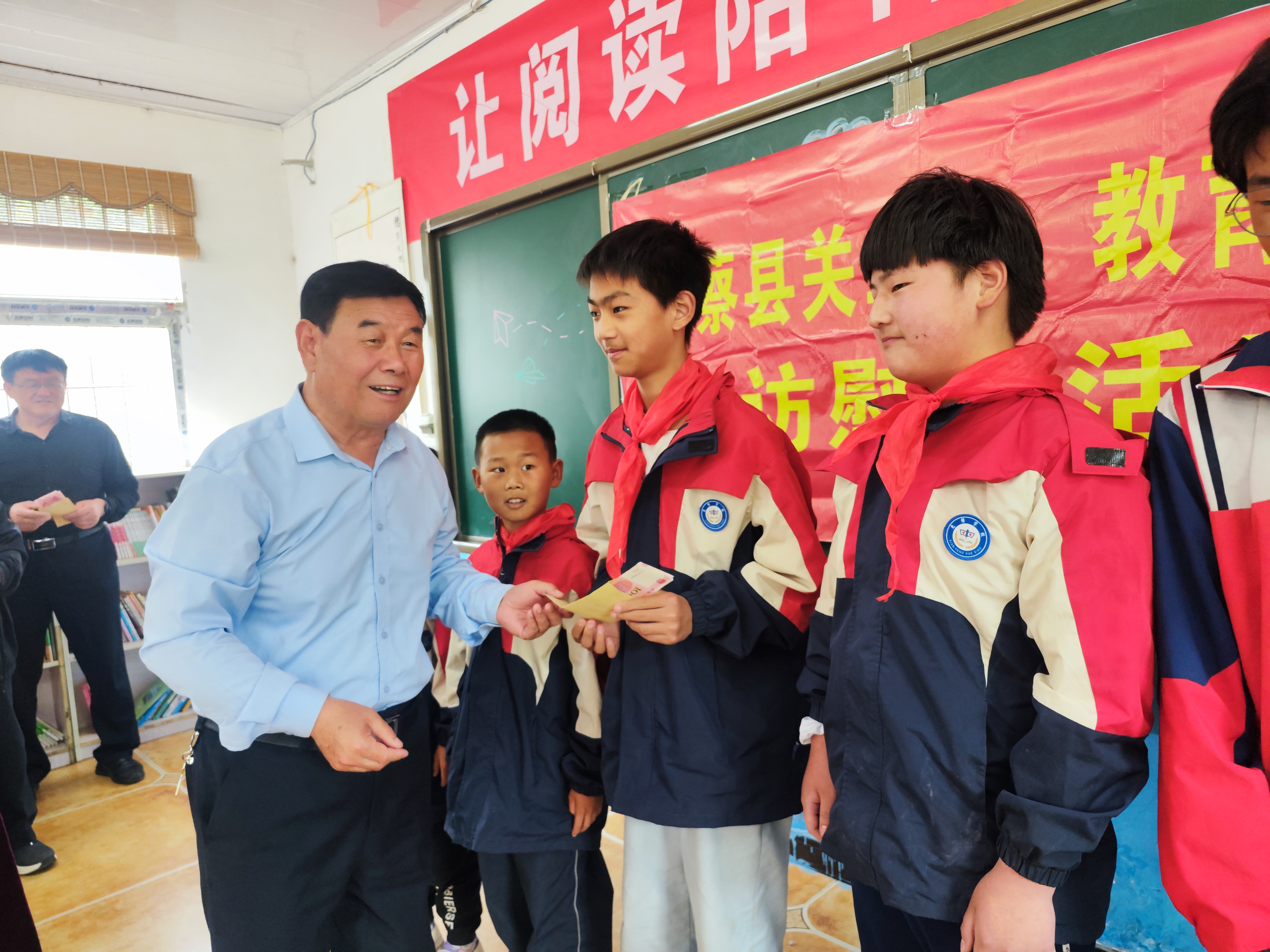 新蔡县关工委执行主任王守平一行详细了解困难学生的生活、学习情况,并送上了慰问金。王守平指出,要关心爱护青少年,让他们坚定理想信念,志存高远,放飞梦想,努力成长成才,为实现中华民族伟大复兴的中国梦贡献力量。