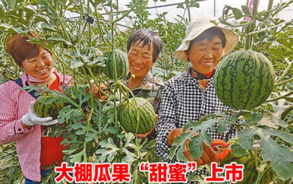 采摘、搬运、挑选、装车……11日,驿城区蚁蜂镇鲁湾村春兴农业种植示范园西瓜大棚里,工人正在采摘西瓜,现场一片忙碌。记者在大棚里看到,一个个吊在藤蔓上、挂着标签的西瓜和甜瓜滚圆碧绿,构成一幅喜人的丰收画卷。“超市要2500公斤西瓜,我们正在按照要求装车。”瓜农李彬说。李彬是个90后大学生,2019年辞去工作返乡创业,如今已是当地有名的致富能手。他在获得经济效益的同时,还带动附近村民务工。(记者 高琳琳 通讯员 米山)