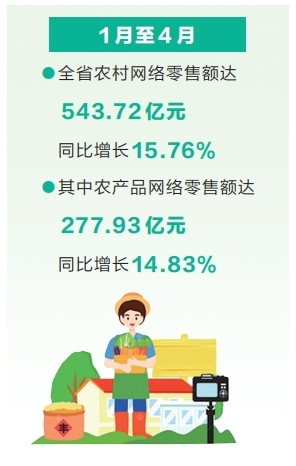 手机成为“新农具”,直播成为“新农活”。我省农村电商正快速发展。当日,记者从省商务厅获悉,今年1至4月份,全省农村网络零售额达543.72亿元,同比增长15.76%,其中农产品网络零售额达277.93亿元,同比增长14.83%。