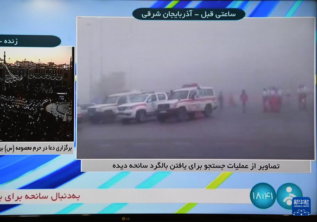这是5月19日拍摄的伊朗国家电视台播放的事故现场附近搜寻画面。新华社记者 沙达提 摄