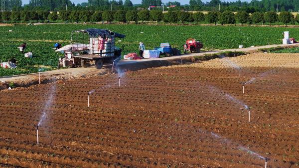 5月中下旬,西平县五沟营镇海蓝牧业, 400亩的蔬菜基地上,一畦畦菜地整齐划一,构成了一幅大地上特有的线条画卷,成为了当地一道亮丽的风景线。