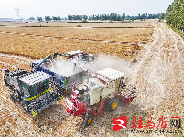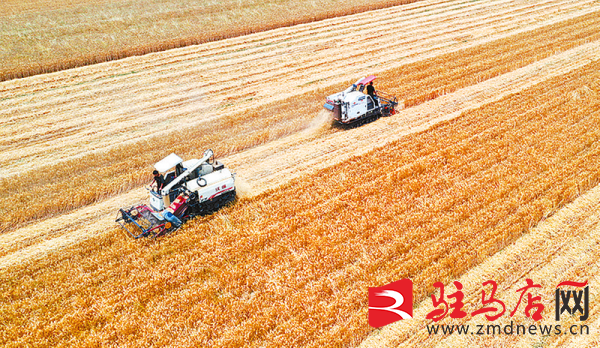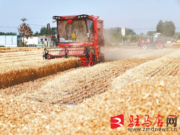 5月27日,在河南省驻马店市驿城区水屯镇,农民驾驶农机收割小麦。