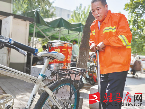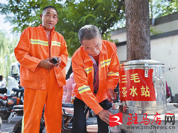 陆三毛在给环卫工人接水。