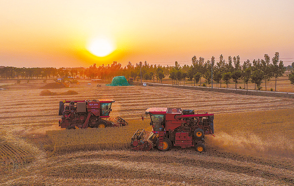 摘要:新华社发(赵永涛/摄) 5 月27日,收割机在河南省驻马店市正阳县兰青乡杨楼村的麦田里收获小麦(无人机照片)。新华社发(高万宝/摄)