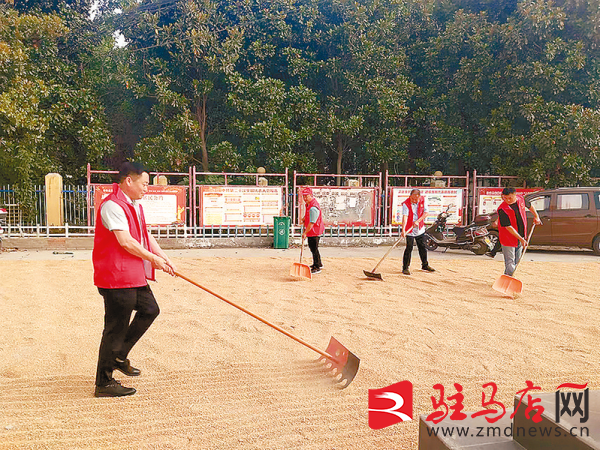 近日,汝南县供销社组织党员志愿服务队到张楼镇方桥村,开展“三夏”志愿帮扶活动,为村民送去矿泉水、方便面等物资,还主动帮群众晒粮。 记者 徐丹 摄