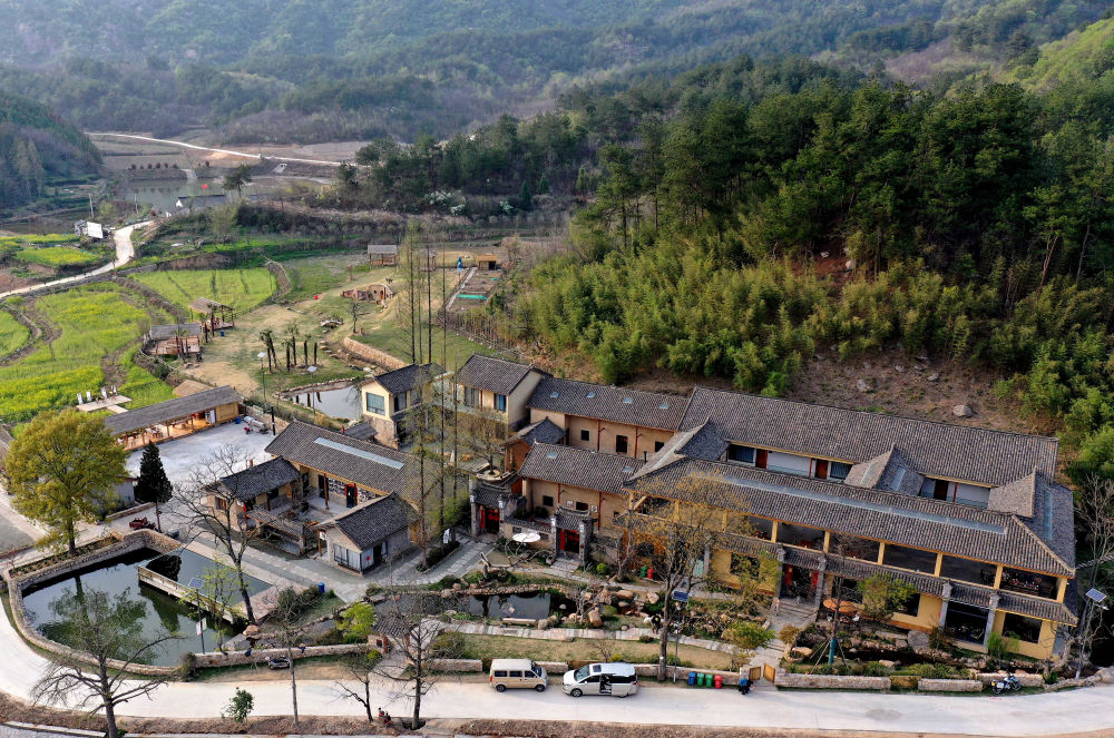 罗山县何家冲村“有稻山房”民宿(无人机照片)。新华社记者 李安 摄