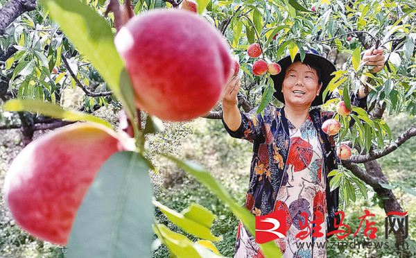 近日,在驿城区蚁蜂镇聂湾村聂湾林场,村民张保红种植的百亩水蜜桃成熟。漫山遍野的桃树郁郁葱葱,一个个红得诱人的水蜜桃挂满了枝头。张保红告诉记者,她种植的水蜜桃在生长过程中不打药,绿色、纯天然。许多市民前去边采摘、边品尝,体验采摘乐趣,呼吸新鲜空气,饱览丰收美景。