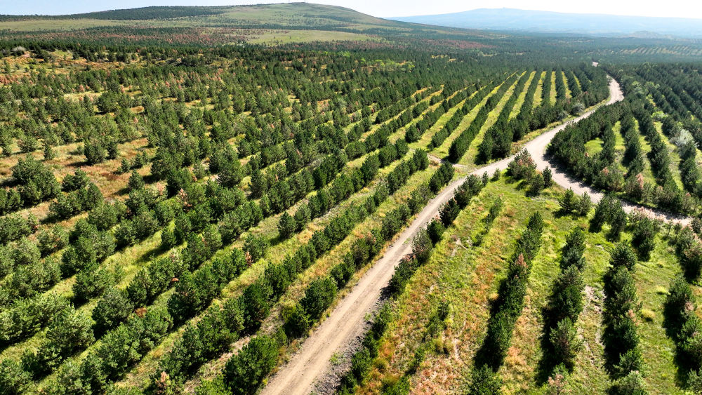 2023年9月10日在内蒙古锡林郭勒盟多伦县拍摄的樟子松林(无人机照片)。多伦县地处浑善达克沙地南缘,当地通过人工造林、工程固沙等措施治理沙化土地。