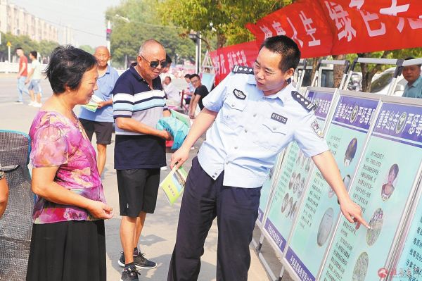 近日,平舆县公安局禁毒大队积极组织民警在县城舆新广场开展禁毒知识宣传活动。通讯员赵彦良摄