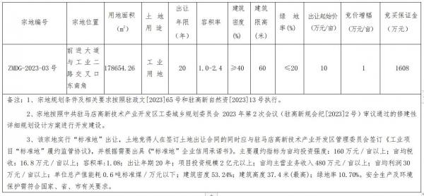 经驻马店市人民政府批准,以拍卖方式出让zmdg-2023-03号宗地国有建设用地使用权。现将有关事宜公告如下: