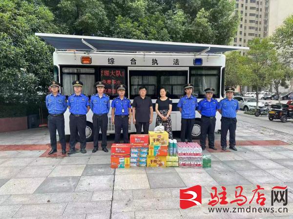 驻马店网讯(记者 梁博涵 郭磊 通讯员 徐嫒婧)连日来,高温天气持续,滚滚热浪给开发区城管局一线执法队员带来了严峻的考验,执法队员冒酷暑、战高温,坚守城市管理一线,为维护市容秩序付出了艰辛努力。8月1日上午,开发区安瑞大药房为奋战在一线的开发区城市管理局执法队员送来了夏日的“清凉”和关怀。