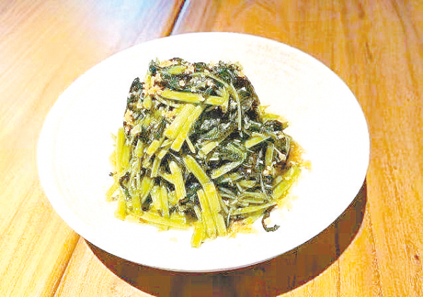 做法:空心菜洗净切段,入锅焯水15秒。虾酱和蚝油加少许清水混合成糊状,锅中倒适量油,加葱、姜炝锅后倒入混合酱料。酱料完全散开后,倒入空心菜翻炒1分钟即可出锅。