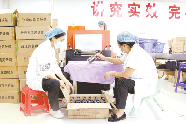 如今,该公司多款玫瑰美容产品从这里加工、包装后走向全国市场,进入千家万户,给爱美的人带去温柔、惬意和享受。每到春末,该公司引进种植的2000多亩大马士革玫瑰花娇艳欲滴,竞相绽放,漫步玫瑰丛中的游人如织。许多行人在这里邂逅甜蜜、尽享生态美景的同时,也把这项新型产业发展项目当成了“致富花、幸福花”,撬动起一方乡村振兴的“浪漫经济”。