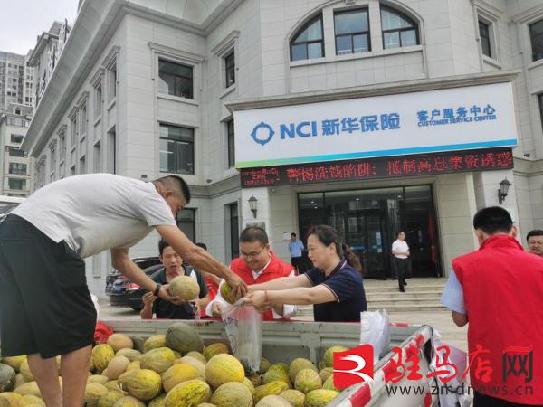 近日,新华保险驻马店中心支公司开展“爱心助农 新华保险在行动”志愿活动。活动现场,志愿者帮助瓜农装瓜、称重,并通过微信群帮助瓜农拓宽销路。