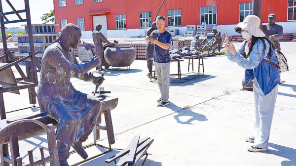 河南天艺景观建材有限公司院内,一个个逼真的雕塑吸引了市民围观,也成为众多慕名而来的“网红”打卡地。