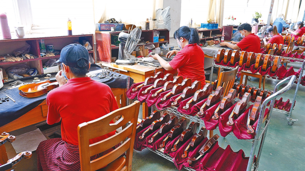 摘要:河南昊韵乐器有限公司工人在制作小提琴。