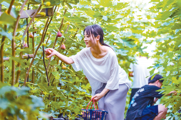 8月15日,西平县宋集镇前胡村宋记采摘园里,鸡蛋大小的无花果挂满枝头,游客正在采摘、品尝。据了解,无花果采摘期是每年7月份到12月份,持续性的采摘带来不菲的收入,成了村民致富的“黄金果”。 记者 许 静 通讯员 赵永涛 摄影报道