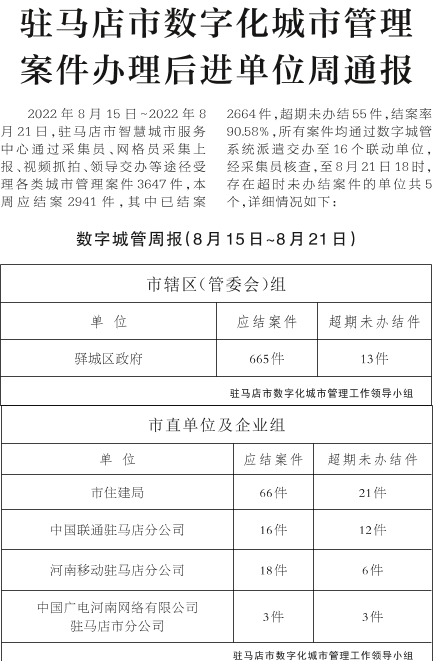 驻马店市数字化城市管理案件办理后进单位周通报-凯发游戏平台