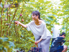 近日,在驿城区禾绿农业开发公司的葡萄园里,一串串颗粒饱满、晶莹剔透的葡萄挂满枝头,引来众多游客采摘。图为采摘现场。