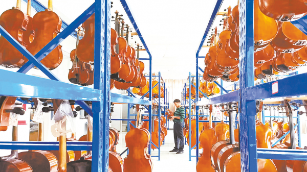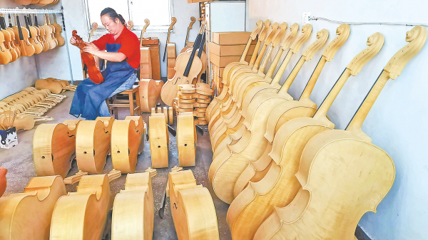 目前,确山县有小提琴企业144家,可生产小提琴、中提琴、大提琴、贝斯及相关配件等超过30个系列400余种型号,产量占全国提琴总量的40%左右,在中高档手工提琴上,更是占据了80%以上市场份额,产品远销意大利、美国、法国、德国等欧美国家,年产提琴40万把,年产值6亿多元,带动了2600多人实现在家门口就业。确山提琴在国际琴界已成为响当当的品牌,为世界奏出“中国好声音”,奏响老区乡村振兴的美妙乐章。