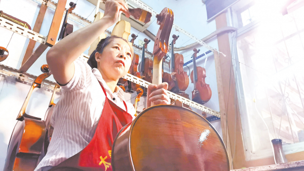 驻马店网讯(记者 王建成)9月3日,在确山县竹沟镇小王庄河南省金鸣乐器股份有限公司和确山县保名手工提琴工作室的生产车间里,一把把制作精良的提琴悬挂在车间琴架上,下料、作板、合琴、打磨、上漆……工人们一丝不苟。