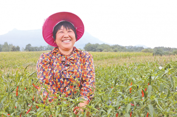 记者在该基地看到,青红交错的辣椒挂满枝头,村民头戴帽子、手提袋子,正忙着采摘成熟的小米辣。“现在辣椒成熟了,采摘一斤辣椒可挣1元钱,摘得多挣得多,不用外出务工,一天收入也不少。”正在采摘小米辣的村民付妮说。村里许多和她一样没有外出务工的村民都在辣椒基地干活。