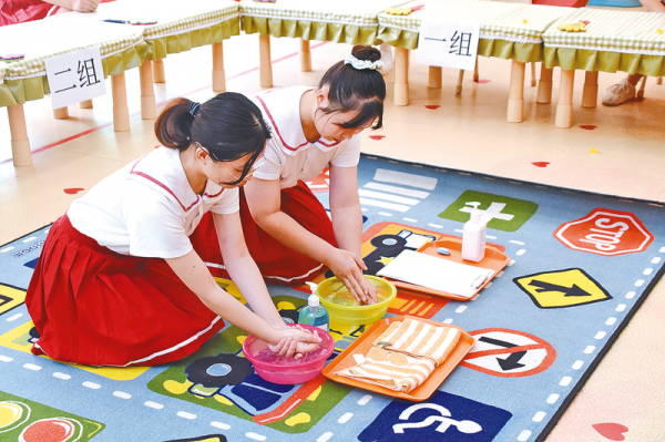 为推动全市托育服务行业健康、规范发展,更好为0~3岁婴幼儿身心健康保驾护航,9月24日,市卫健体委在真爱幼幼托育中心成功举办2022年驻马店市首届托育职业技能竞赛。图为竞赛现场。记者 王冰之 摄
