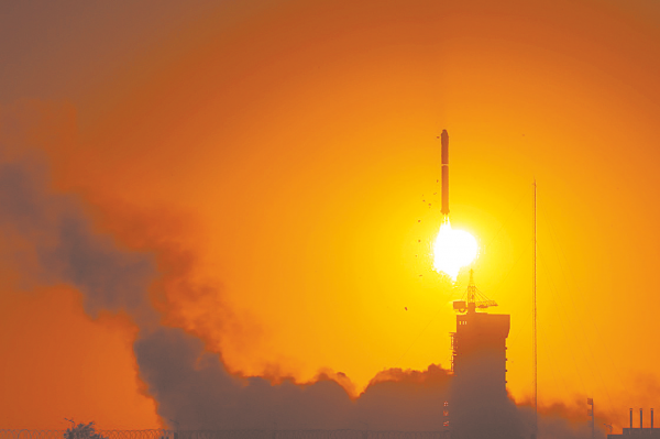 10月9日7时43分,我国在酒泉卫星发射中心使用长征二号丁运载火箭,成功将先进天基太阳天文台卫星发射升空,卫星顺利进入预定轨道,发射任务获得圆满成功。 新华社发(汪江波摄)