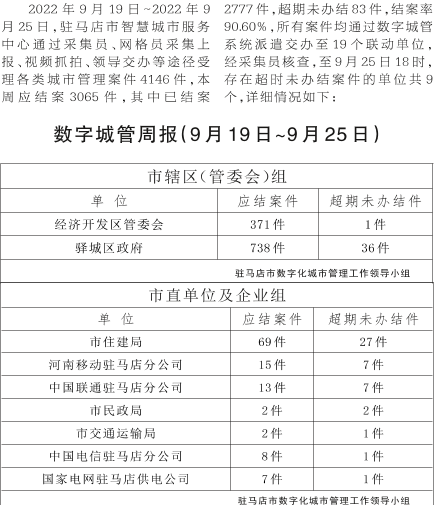 驻马店市数字化城市管理案件办理后进单位周通报-凯发游戏平台
