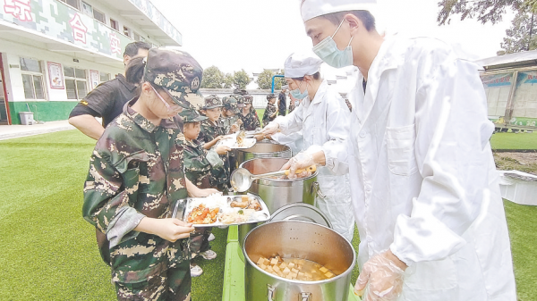 “锄禾日当午,汗滴禾下土。谁知盘中餐,粒粒皆辛苦。”在紧张的训练中,10月1日中午,小记者们饥肠辘辘,大家一起跟着教练员学习餐前文化。这让他们懂得了军营的纪律,更让他们明白了粮食的珍贵。
