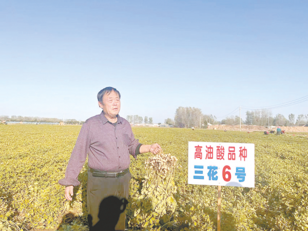 “政府推行项目供种就是好,俺今年种植的几亩花生,全是河南省三九种业有限公司供应的红罗山牌花生一代原种‘三花6号’高油酸花生品种,果多、粒籽大、饱满,俺非常满意!”该村花生种植户冯道修兴奋地说。