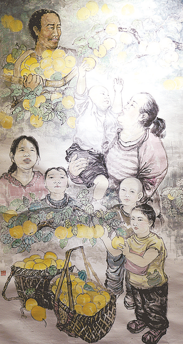 《共享脱贫幸福果》(国画)袁兴龙/绘